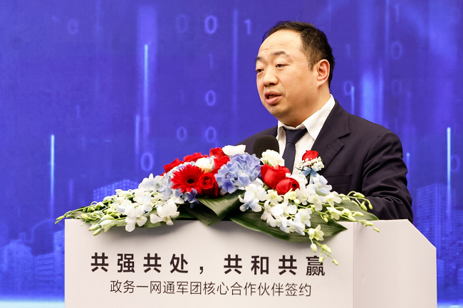 华为高级副总裁、政务一网通军团CEO杨瑞凯在致辞中表示:“政务与城市数智化转型涉及多场景。为了更好满足客户需求,提升客户体验,华为政务一网通军团持续提升城市智能体架构,和合作伙伴共同围绕底座智能化、业务模型化、数据价值化、网络智联化等业务方向打造基线能力和创新商业模式。华为政务一网通军团将与合作伙伴一起各自发挥优势、能力互补,实现共和共赢、共强共处,共同把市场蛋糕做大。本次签约后,双方将进一步加强深度合作,共同探索行业能力,更好满足客户需求,共同开启新征程。”