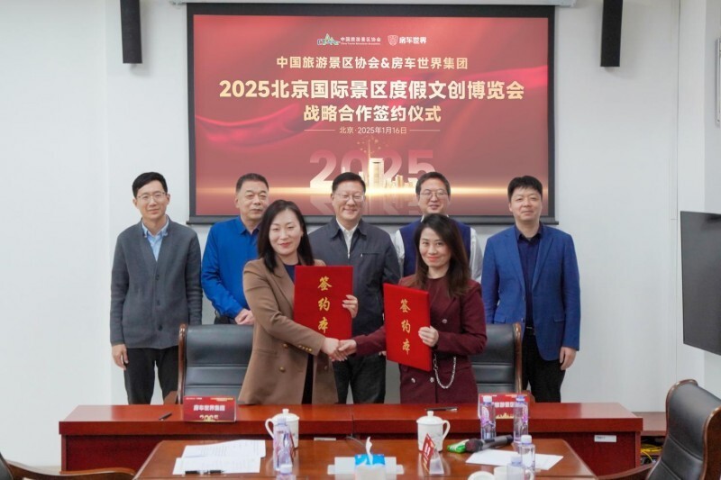2025年1月16日,中国旅游景区协会与房车世界集团战略合作签约仪式圆满举行。北京市房山区文化和旅游局局长梁义国、北京市房山区商务局副局长薛宝立、中国旅游景区协会秘书长霍建军、北京市房山区文化旅游投资发展有限责任公司总经理李超、房车世界集团创始人兼CEO 王继东等重要嘉宾出席了此次签约仪式,并分别发表了精彩致辞。