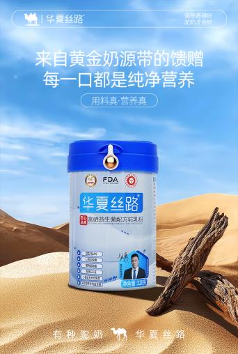 经过多年的创新研发,华夏丝路已打造全系列产品矩阵,如富硒益生菌配方驼乳粉、全脂纯驼乳粉、成长配方驼乳粉以及有机驼奶粉等,精准满足不同人群健康需求。其中,采用特色工艺的富硒益生菌配方驼乳粉富含硒元素和多种益生菌,并通过双低G认证。经公开资料证明,硒是人体所需微量营养素之一,该产品特别添加的6种专利活性菌株可在酸性环境中保持较高存活率。其菌群含量达到行业领先水平。是一款极具营养价值和适合多种人群的优质驼乳粉。特别适合于关注肠道健康和营养补充的消费群体。