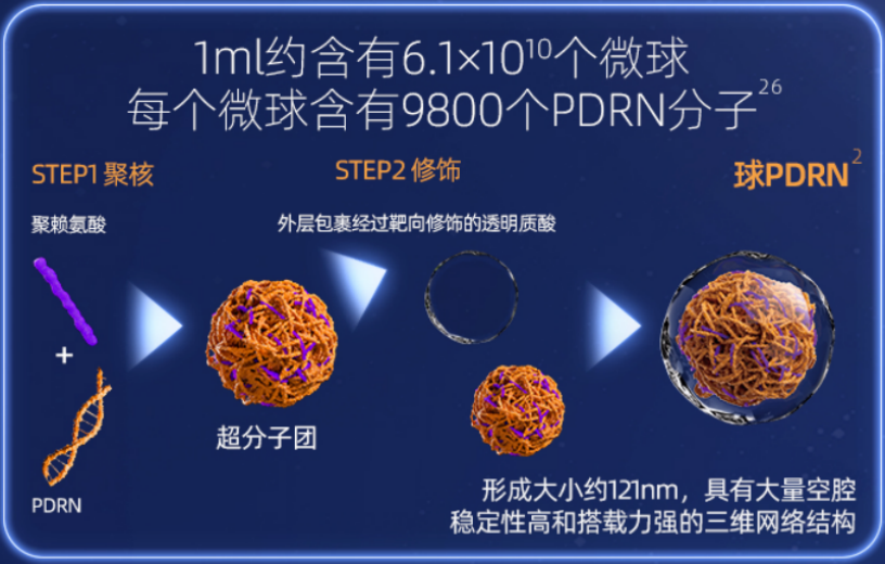 虽然PDRN如此强大,但因为分子量太大,目前PDRN产品只能注射不能涂抹使用,在医美项目中运用有一定风险。绽媄娅以大国技术为基础,首创 “超分子微球化” 技术,经自研超分子微球化技术压缩后的球PDRN,类似于将瑜伽球压缩成网球大小,每个微球含有9800个PDRN分子,渗透性和稳定性更强,激活细胞能量,首创涂抹式PDRN,引领PDRN进入涂抹护肤时代!球PDRN也获得了全球首个独家专利。