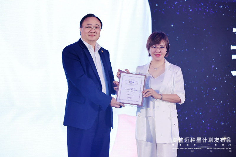 在发布会最后,由昊海生科集团执行董事吴剑英先生为张小熊轻医美创始人张亚娟女士颁发聘书,邀请张亚娟女士担任美迪迈特邀品牌顾问。吴剑英先生为此次种星计划发布会带来最终致辞。吴剑英先生认为,只要坚持专业、初心不变、持续努力,万事皆可成。表达了对医美行业生态构建的认同、对医美行业光明未来的期许。