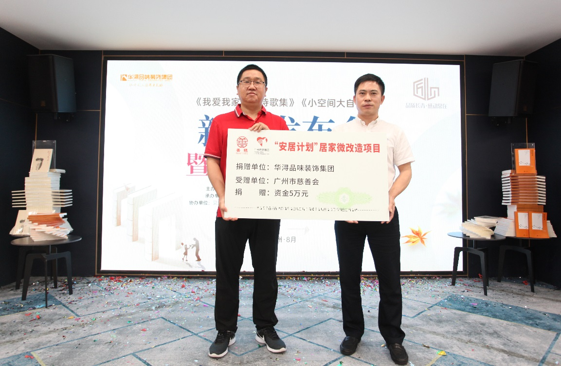 8月21日下午,华浔品味装饰集团重大文化项目——《我爱我家散文诗歌集》《小空间,大自在》新书发布会暨义卖捐赠仪式,在广州顺利举行。本次活动采用“线下+线上”方式开展,引发了社会各界的广泛关注,取得了良好的社会影响力。