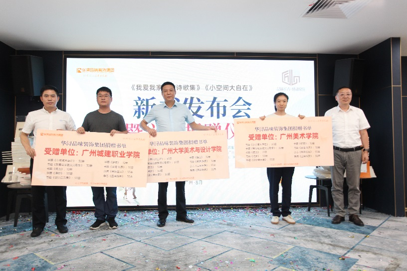现场,华浔还分别向广州大学、广州美术学院、广州城建学院、广州荔湾区鹤建里社区、广州海珠区素社街、江西武宁县第一中学等单位,捐赠《我爱我家散文诗歌集》《小空间,大自在》《链变》《设计启示录》等华浔编著出版的书刊,为建设书香校园、书香社区尽自己的一份力量。