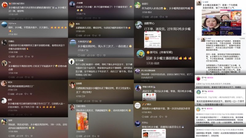 产品充满匠心与创新,解决完消费者觉得产品好的问题。在营销策略上,乡乡嘴同样展现出非凡的智慧。通过线上线下全渠道布局,乡乡嘴不仅在传统商超、便利店等线下渠道占据一席之地,更在电商平台及社交媒体上大放异彩, “肥娟小吃商战之王” “长沙黄兴广场爆款快闪” “魔性品牌创意短片”......乡乡嘴通过一系列精彩的营销动作与年轻消费者建立了紧密的互动与联系。