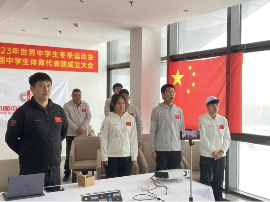 2月6日上午,2023年世界中学生冬季运动会(以下简称“世界中冬会”)中国中学生体育代表团正式成立。来自全国6个省、自治区、直辖市21所中学的36名中学生运动员将参加高山滑雪、单板滑雪、越野滑雪、冰壶、花样滑冰等5个大项22个小项的比赛,代表团总数为65人。