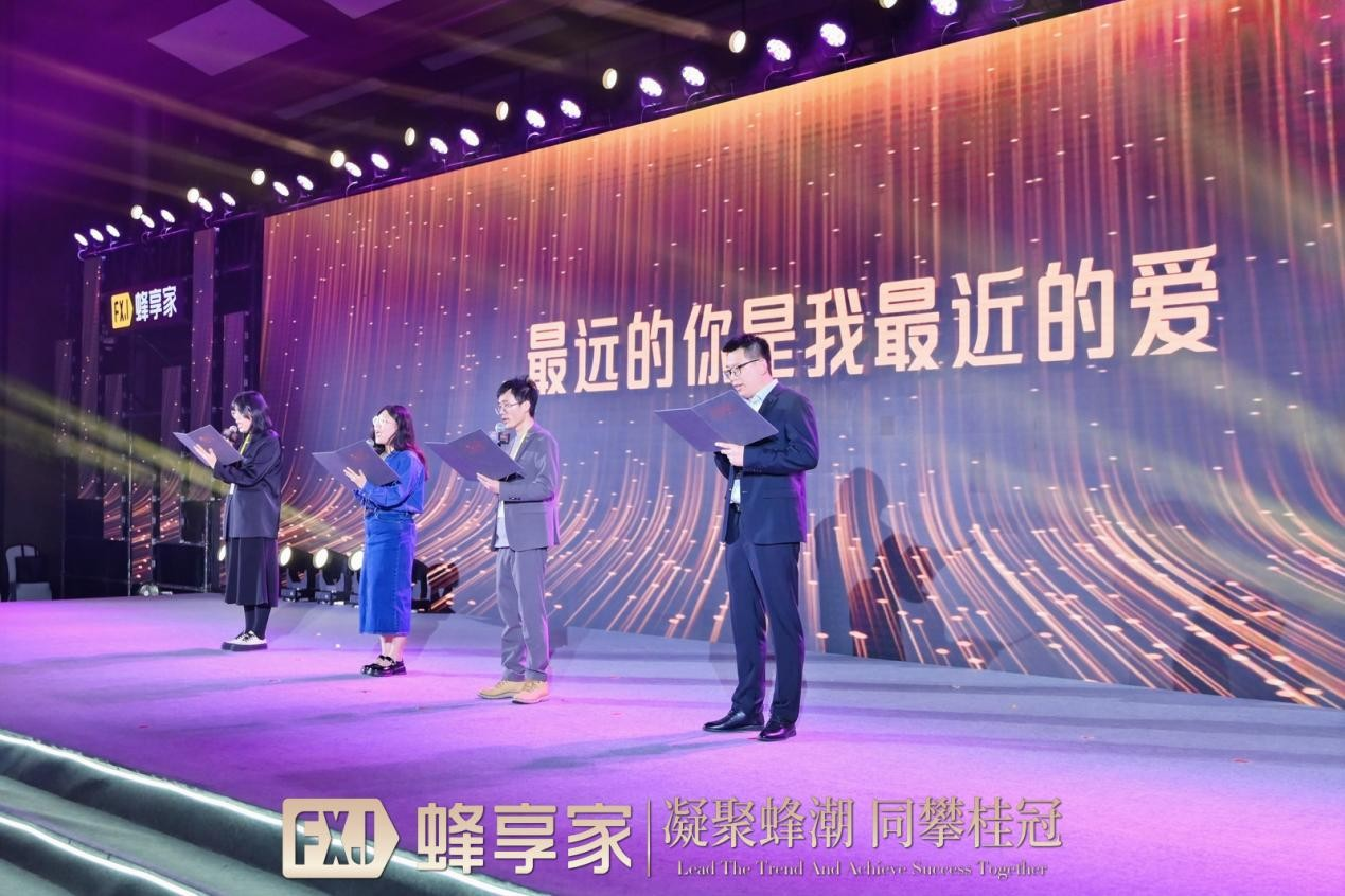 “往来路程的颠簸,如跃动的脉搏,跟随内心的选择,一起来,点燃蜂享最美的烟火。”蜂享家运营团队代表朗诵亲自填词的诗《最远的你是我最近的爱》,再忆和掌柜们走过的岁月。相隔万里,心在一起,无数个为掌柜殚精竭虑的昼夜里,蜂享家运营团队秉承服务到点的慢牛式零售精神,帮助掌柜们赢得财富和尊重。