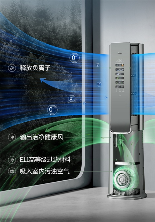 美的鲜净感空气机还搭载了专业空气净化器所使用的的内循环净化技术,室内空气经过HEPA网净化释放,同时还将释放千万级负离子使空气尘埃带电沉降,做到双重除尘净化,配合仿生自然新风,为用户提供健康干净的室内空气,守护家人健康。