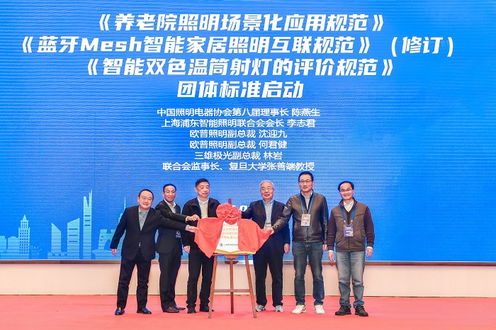 开放会议上,欧普照明与参会嘉宾共同见证了《全屋无主灯智能化规范》《微波雷达传感技术室内应用规范》两部团体标准的正式发布。同时,《养老院照明场景化应用规范》《蓝牙Mesh智能家居照明互联规范》(修订)《智能双色温筒射灯的评价规范》等团体标准也于会上正式启动。