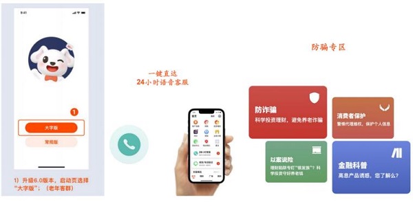 比如,针对颐年客群的需求,平安口袋银行已经设立并打造出了40项适老化常用及特色功能。在产品设计过程中,研发团队通过用户调研了解到,颐年客群往往面临着视力不佳、看不清手机界面内容、记不清操作步骤等现实窘境。此外,由于平时信息获取渠道有限,颐年人群搞不懂金融问题,容易遭遇网络骗局等问题。对此平安口袋银行上线了“一键切换大字版”、“一键直达电话客服”、“验证码输入延迟”、“防骗宝典”、“防骗 短信验证”等功能模块,在界面显示、功能交互、防伪防骗上为颐年客群提供更加精准适配、简单易用的在线金融服务。经调查显示,目前90%以上的颐年客户表示认可平安口袋银行的功能设置和交互流程,特别是在界面显示、隐私保护、金融安全上,能够得到全面、安全、放心的用户体验。