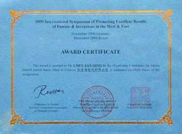 2008年6月8日在北京中医中药中国行的启动仪式上被命名为“中医名药”。2008年被中央党校决策者杂志社,决策者.重大理论部评为:共和国重大功献‘金五星’一级勋章,2008年被科技部《科技创辉煌》编委会评为:“百佳创新人才”金奖奖,2009年被中国管理科学研究院评为“共和国60华诞重大学术前沿理论”金奖和共和国建设突出成就“五星级优质勋章”,2010年被国家医学教育发展中心编入《共和国名医专家大全》,《世界率学术辞海》其临床适应症主要是针对鼻炎、鼻窦炎,有效率98%,,率治愈率95%左右,其次对鼻中隔偏曲、鼻甲肥大、鼻息肉及手后遗症也有明显的疗效。