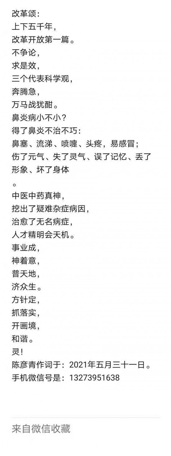 献礼中共二十大,一带一路显神通。中医中药行天下,各种疫情祛无踪。全球百姓享太平。——中医鼻炎克星陈彦青大夫