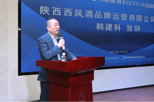 陕西西凤酒品牌运营有限公司总经理韩建科做分享致辞。他讲到,西凤酒15年6年陈酿22年初心不忘,22年坚定信心,用责任去践行使命担当,此次战略合作的正式开启,预示着西凤酒15年6年陈酿品牌第二个20年新征程的重新出发。