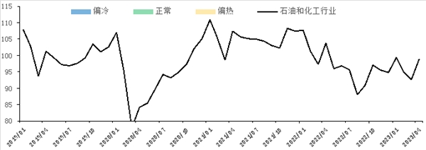 石油和化工行业景气指数由中国石油和化学工业联合会与山东卓创资讯股份有限公司联合编制,是石油化工行业的微观景气循环监控指标,包括“石油和天然气开采业景气指数”“燃料加工业景气指数”“化学原料和化学制品制造业景气指数”“橡胶、塑料及其他聚合物制品制造业景气指数”四个分指数。石油和化工行业景气指数的景气指标选择以度量行业的潜在产出和经济效益为标准,包括生产类微观数据和行业效益类数据,生产类微观数据包括:产能利用率、产品盈利能力、产成品库存水平。基础数据来源于与千余家企业建立的定期调研评估结果。