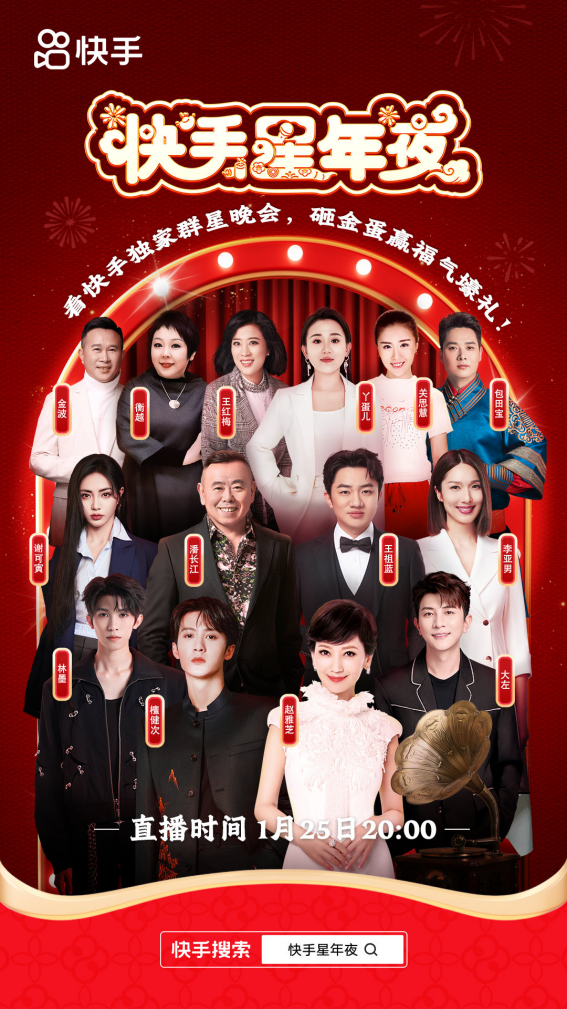 与此同时,现场将全方位回顾2024年的热门话题,快手老铁们耳熟能详的神曲将被全新改编,下一个走红热曲即将诞生。喜剧明星们也将大显身手,2025开年爆梗究竟出自谁口?不妨一起围观!最值得期待的当属直播互动环节,此次将复刻经典综艺《幸运52》的金蛋玩法,打造“幸运2025”互动现场。全民参与抢金蛋,明星助力,现场连麦,实现愿望!