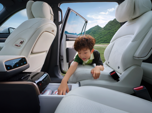 在打造舒适“移动之家”上,eπ008可谓不遗余力。今年推出的如奕版,直接把“冰箱彩电大沙发”这新三样变成标配:5℃制冷/50℃制热的智能冷暖箱,冷饮热食随时伺候;15.6英寸后排娱乐屏支持手机投屏,搭配20扬声器WANOS全景声音响,后排秒变移动影院。5座版魔毯座椅灵活多变,6座版的零重力座椅更是长途解乏利器。值得一提的是,无论酷暑严寒,其前后排空调系统制冷制热效果都非常迅捷且均匀,能迅速为全家营造舒适的车内环境。 加上全景天幕、电动遮阳帘等贴心配置,每个座位都力求“头等舱”待遇。