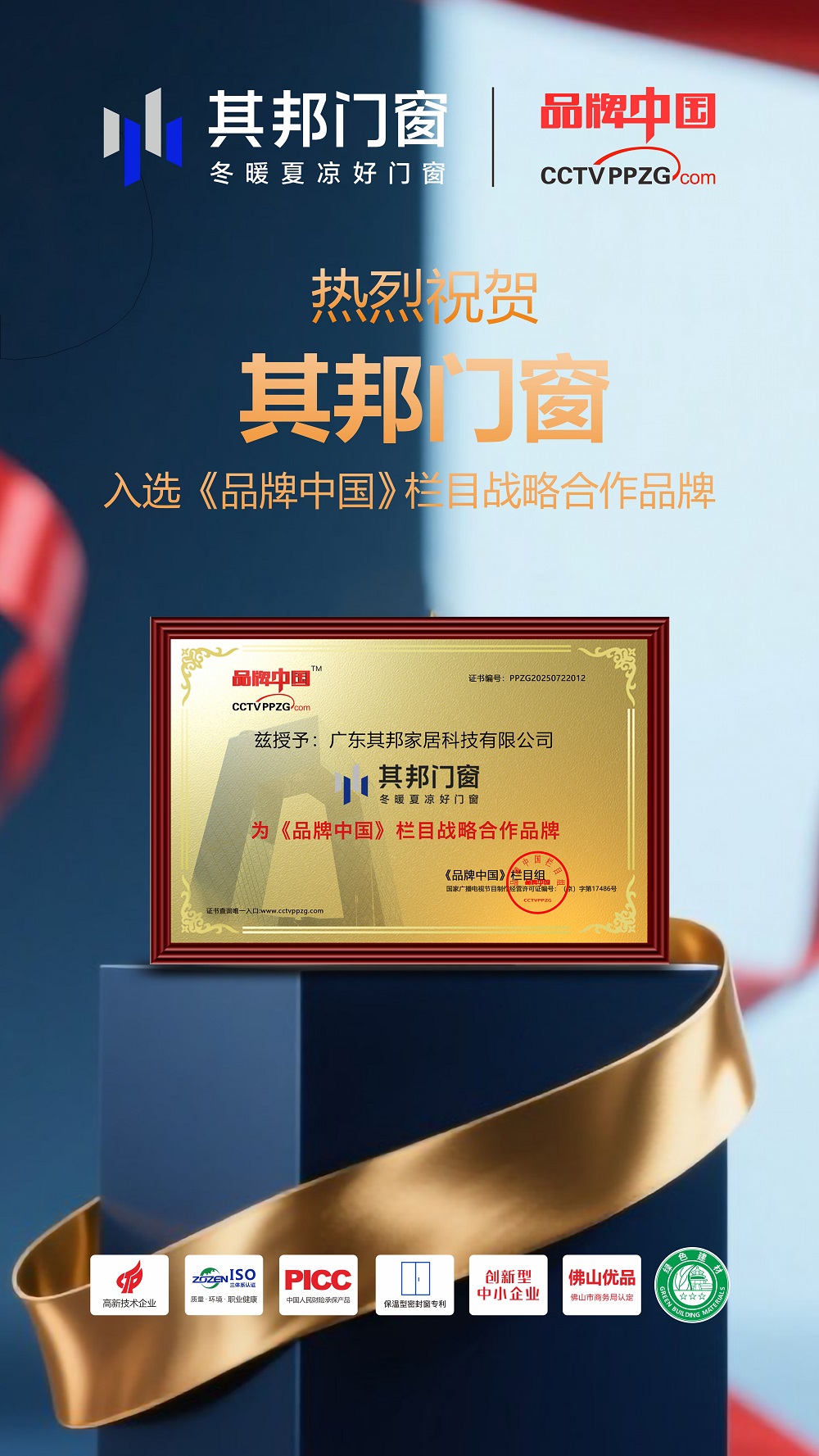 “能与《品牌中国》栏目达成战略合作,是其邦门窗的荣耀,更是一份沉甸甸的责任。” 其邦门窗董事长黄东建先生表示,“这不仅是对我们过往在门窗领域深耕的肯定,更是对中国门窗产业‘智造升级’的期许。我们期待通过这个权威平台,让更多人看到中国门窗品牌的匠心与创新。”