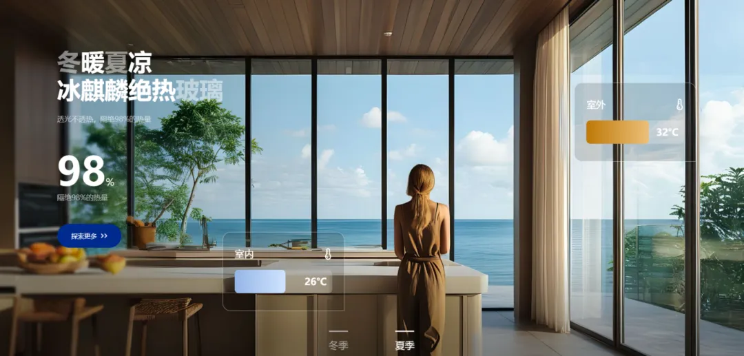 在节能领域,其邦门窗拥有保温型密封窗专利技术,创新性地采用四重节能设计:断桥结构设计+隔热条填充蓝芯聚氨酯+C6全能冰麒麟玻璃+速的奥微发泡前置填充技术,其中C6全能冰麒麟玻璃隔热节能性能尤为瞩目,透光不透热,有效隔绝98%的热量,为家居环境守住舒适温度。