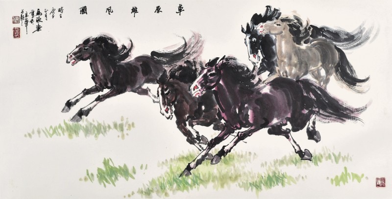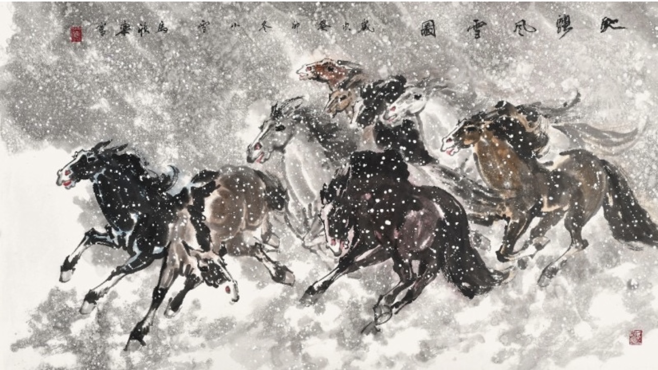 在黄胄先生艺术精神和理念的影响下,马欣乐不断沿着守正创新之路前行。在画马领域,他汲古融今,追求唐马的气质风骨,取徐悲鸿、黄胄画马的精髓,尤擅绘群马。