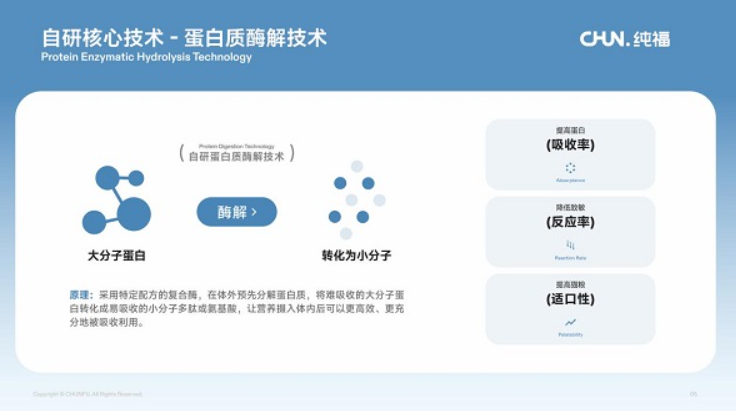 在这一科研体系的支持下,纯福长期聚焦的酶解工艺不断取得实质性突破。该技术目前已成功获得中国国家发明专利,同时纯福联合江南大学在国际权威SCI期刊上发表相关论文,逐步构建起扎实的品牌科研背书体系。在其与江南大学的联合课题中,其酶解工艺已被证实使产品短肽含量达到酶解前的18倍以上,为蛋白质的高效吸收奠定了分子基础。