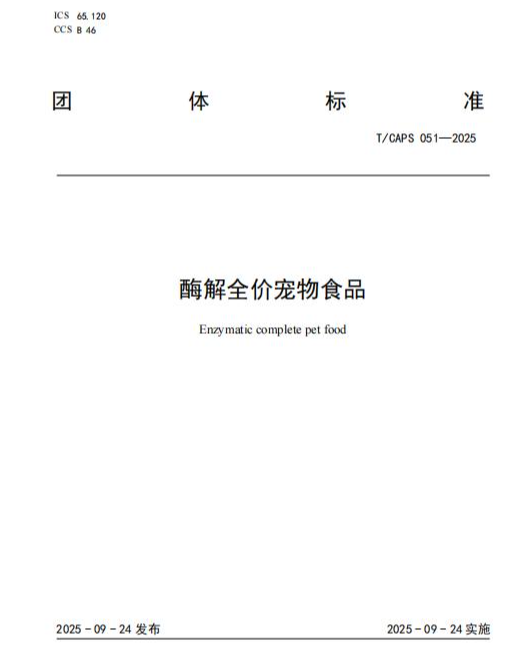 新动作:发布国内首个《酶解全价宠物食品》团体标准