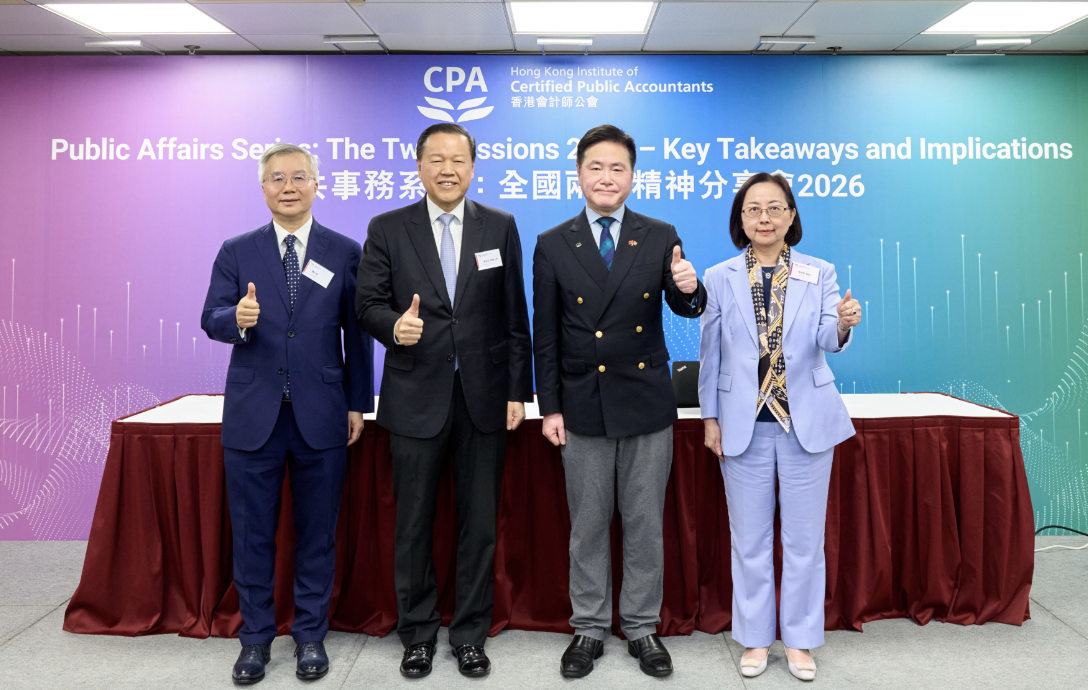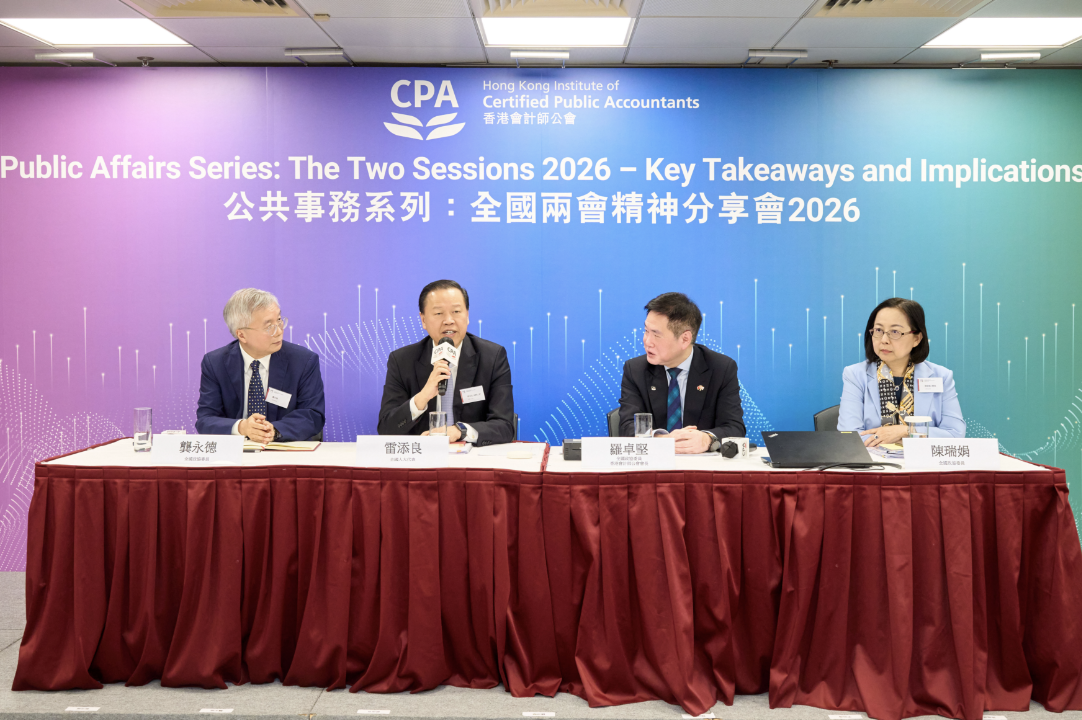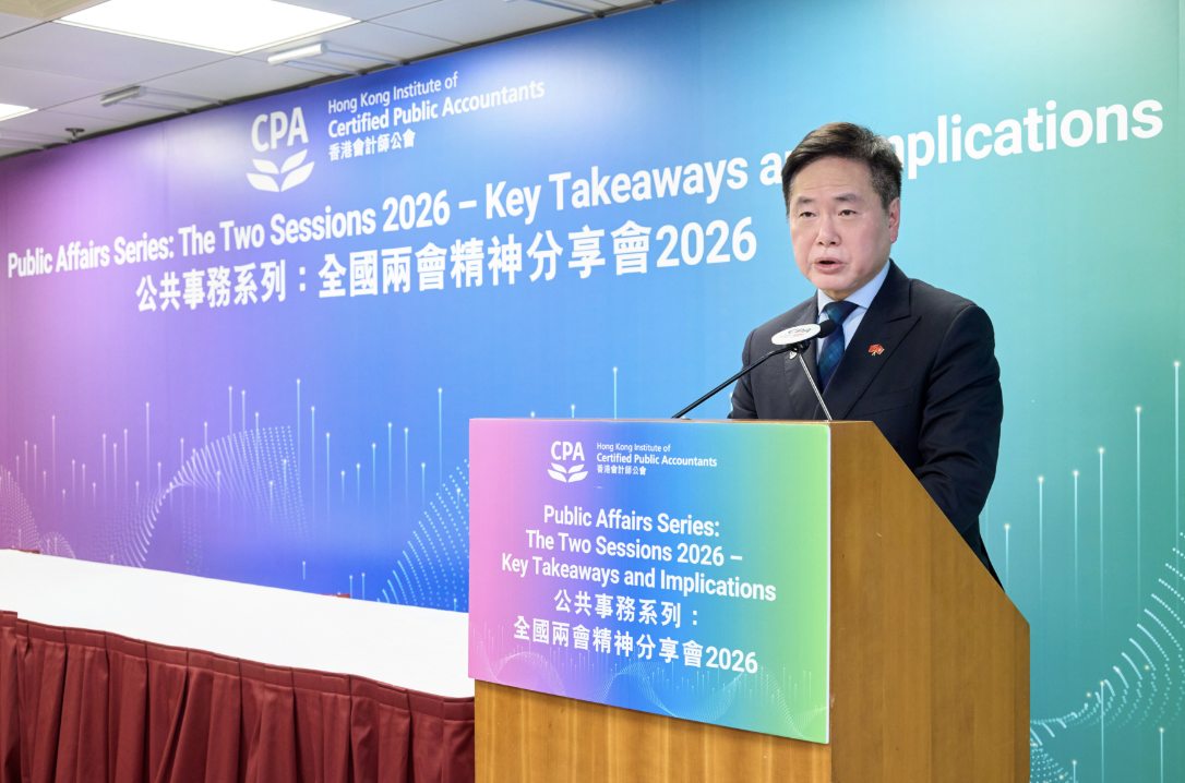 “全国两会精神分享会2026”是本年度香港会计师公会“公共事务系列”讲座的首场活动。公会希望通过这一系列讲座,加深会员对经济、社会及公共政策议题的理解,启发会计专业领域的新思路与新方向。讲座的完整内容将制作成电子学习课程,稍后上传至公会网站,供会员重温观看。