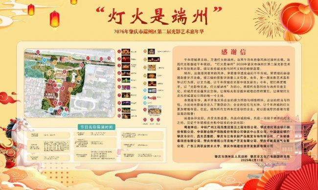 灯火虽落,余温未散。“灯火是端州” 第二届光影艺术嘉年华的圆满落幕,为端州的新春画上了浓墨重彩的一笔。这场盛会,让更多人看见端州的美、感受端州的韵、爱上端州的情,更让 “灯火是端州”成为深入人心的城市文化符号。未来,端州将继续以文化为魂、以旅游为脉,不断创新文旅融合形式,打造更多优质文化活动,让千年古城的光影更璀璨、文化更鲜活,让更多人走进端州、读懂端州、乐享端州。