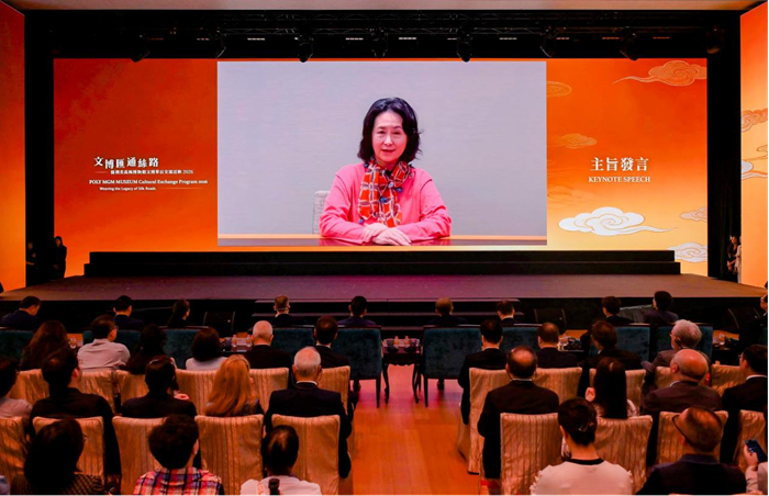 保利文化党委书记、董事长,保利美高梅博物馆理事长王波,与美高梅中国控股有限公司董事长及执行董事、保利美高梅博物馆副理事长及馆长何超琼,通过视频祝愿活动圆满举行。澳门中联办宣传文体部副部长白冰;澳门特别行政区政府文化局局长梁惠敏;中国文物交流中心副主任孙小兵;美高梅中国控股有限公司首席执行官及执行董事、保利美高梅博物馆理事冯小峰;保利文化首席品牌官、保利美高梅博物馆理事徐碚;美高梅文化艺术高级副总裁、保利美高梅博物馆理事郭蕙心;新疆维吾尔自治区文物局局长李军;河南省文物局副局长贾付春;陕西历史博物馆馆长、研究馆员庞雅妮;甘肃省博物馆党委书记白发武;中国(海南)南海博物馆馆长辛礼学;广东省博物馆(广州鲁迅纪念馆)副馆长赵丽帆;北京大学历史学系教授、上海外国语大学世界艺术史研究所所长朱青生;澳门大学艺术与设计系主任、教授李军等多位海内外文博专家齐聚一堂,依托保利美高梅博物馆这一国际化平台,围绕“丝路”展览展开深度交流与对话,探讨如何以文物为媒,以文化为桥,讲好中国故事,传播中华文化。