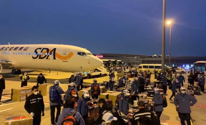 没有什么岁月静好,只不过是有人在替我们负重前行。2020年1月25日农历大年初一,本该是举家团圆的日子,山航执行SC9001航班却搭载山东首批医疗队138名医护人员和医疗物资星夜驰援武汉,医疗队员热泪写下:“等你们接我们回家……”1月27日白天,李克强总理向武汉当地“抗疫”一线医护人员承诺:“今天晚上一定把2万套护目镜运到这里!”当晚18:17分,山航SC9001航班从青岛流亭机场起飞,载运74箱共计约20000副护目镜紧急驰援武汉,19:50分航班平安落地武汉,总理的承诺如期兑现。“山东2万护目镜驰援武汉”登上微博热搜,24小时内阅读量超过2.1亿。同时在27日,山航首尔营业部连夜从韩国急送10万个医用口罩回国,因物资较多,托运装机需大量时间,导致航班延误,被延误航班旅客均表示理解和支持,被媒体称为“最美等待”。1月28日,山航执行SC9001医疗支援包机航班,运送山东第二批援鄂医疗队135名医护人员及10万个口罩前往武汉。1月29日至30日凌晨,山航一晚出动两架飞机运输口罩、防护服等医疗物资驰援一线,完成了15000只医用口罩和10510套防护服的运输保障,完美诠释了“山航效率”。2月2日、7日、9日、11日、13日、15日、20日……山航以平均两天一架医疗包机的速度驰援武汉,截止目前,山航已经派出16架医疗包机。