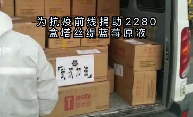据栏目了解,湖北塔丝缇实业有限公司为抗疫⼀线累计捐赠2280盒塔丝缇蓝莓原液。向武汉抗疫⼀线部队官兵和孝感大悟统战部防疫指挥中心分别捐赠600盒塔丝缇蓝莓原液;向湖北省妇幼保健医院捐赠600盒塔丝缇蓝莓原液,向孝感大悟人民医院定向捐赠300盒塔丝缇蓝莓原液;向武汉志愿者捐赠180盒塔丝缇蓝莓原液;蓝莓液里面的花青素含量可以非常有效的为抗疫英雄增强抵抗力,而新冠病毒最喜欢袭击的就是抵抗力差的人群。这⼀份份爱心捐助称之为雪中送炭也不为过。