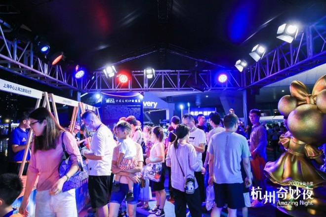 8月14日晚,由杭州市文广旅游局、江干区人民政府、杭州市商贸旅游集团有限公司主办,杭州市文化和旅游推广中心、江干区文广旅体局、都市快报、杭州钱江新城文化传媒有限公司承办的“2020文旅市集·杭州奇妙夜”在杭州钱江新城市民中心南广场-波浪文化城正式开启。