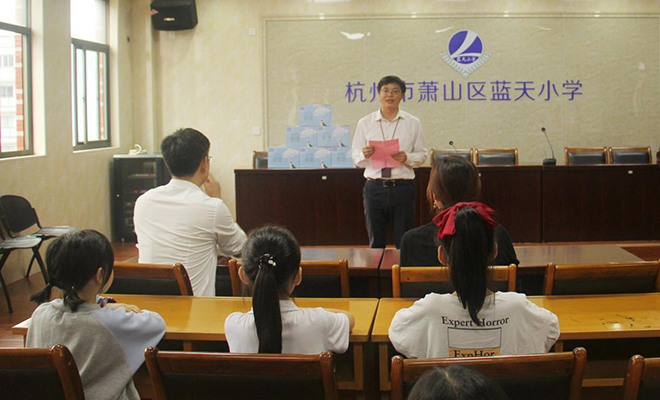 杭州市萧山区蓝天小学是一所全日制义务教育段民办学校。学校自2002年成立以来,一直致力于帮助解决外来人员子女的上学难题。在许多家长为孩子就学问题而焦头烂额之时,蓝天小学已然走在了社会前列:只需凭借萧山区居住证,孩子们就可顺利入学,享受义务教育。令人更加欣喜的是,历经十八载春华秋实,蓝天小学早已硕果累累,一批又一批的学子在这里起航,向着更高的目标冲刺。