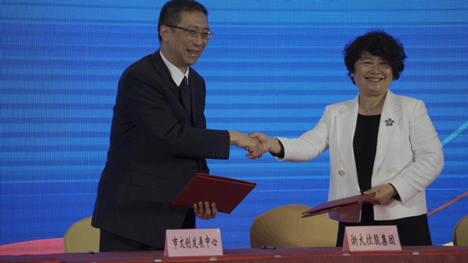 相关单位领导致辞完毕后,“浙江大学控股集团”、“意大利托斯卡纳传统手工艺联盟”两家机构分别与“杭州文化创意发展中心”、“杭州文化会展有限公司”签订了战略合作协议。随后,杭州市文化顾问熊澄宇、中国传播学会副会长孟建等领导分别发表了主旨演讲,年度数字内容产业行业指数也正式对外公布。上午10:35分,与会领导宣布:2020杭州文化创意产业博览会正式启幕。