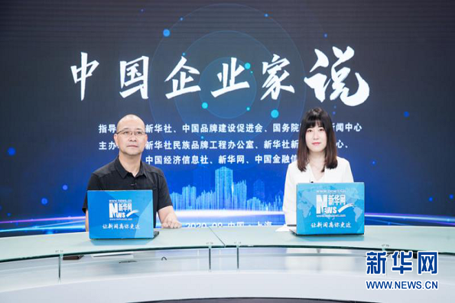 图为九牧集团副总裁严桢(左一)做客“2020中国企业家说”高端访谈现场。新华网 吴恺 摄