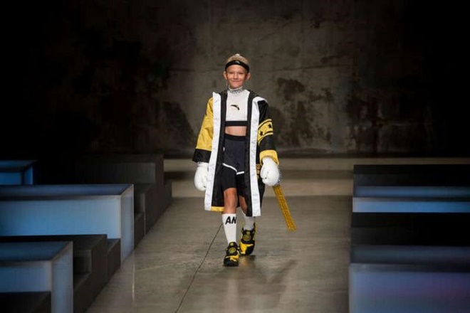 9月8日,在美国纽约,模特展示安踏童装。新华社发(郭克摄)