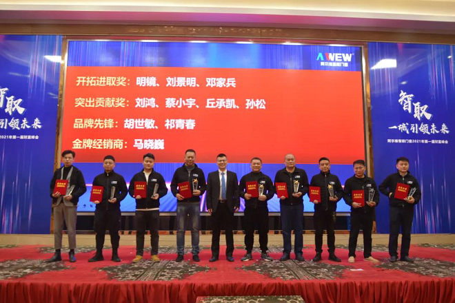 张总为2020年表现优秀的经销商家人们进行颁奖,分别颁发开拓进取奖、突出贡献奖、品牌先锋、金牌经销商等,感谢他们的一路陪伴与支持。