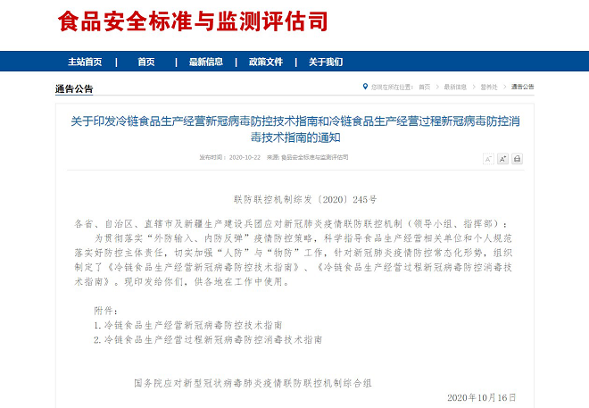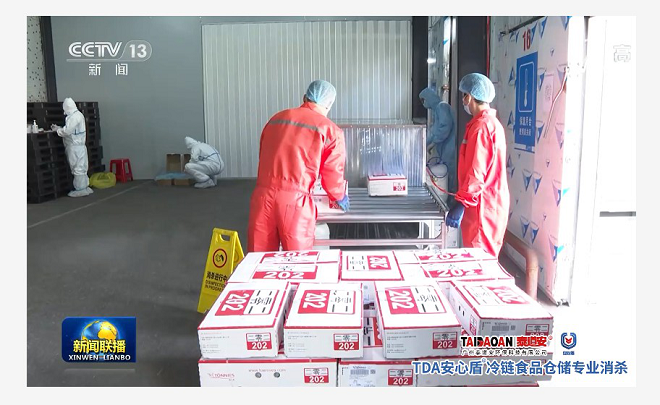 广州泰道安环保科技有限公司推出的安心盾低温货物消杀系统,其设备采用了"全新轨道式自动立体六面消杀技术",可以对冷链商品、进口生鲜货物、产品包装、快递包裹行李等通过消毒仓进行全方位的消杀(包括包装皱褶部分);符合国家《进口冷链食品预防性全面消毒工作方案》的要求;并于12月获CCTV-1央视晚间新闻联播,CCTV-13央视新闻频道关注报道。目前,第三代安心盾低温冷链货物消杀系统已率先在广东地区冷库定点投放展开消杀作业。