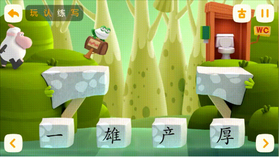 以《洪恩识字》为例,别出心裁地设定了 “玩、认、练、写”多重学习环节,且匹配有生动形象的不同互动场景。小朋友不仅能听到专业的发音和讲解,还能积极参与其中,点一点、选一选、写一写,在各种互动中,五感全方位被调动,不知不觉就掌握了所学汉字。