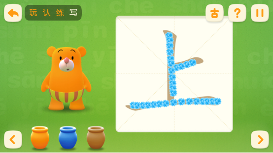 《洪恩识字》专门对1300个字、近一万个笔画进行了拆解和编辑,并且针对不同年龄的孩子的手部发展情况,设定了不同的容错率。哪怕是年龄较小的孩子也可以流畅书写,掌握汉字的正确笔顺、笔画。