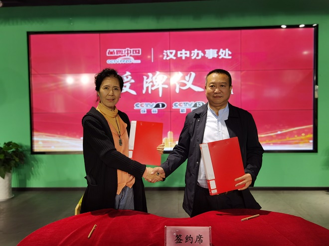 《品牌中国》西部中心品牌主任李玉霞同志代表栏目组与汉中市电子商务协会会长袁国强同志签约。