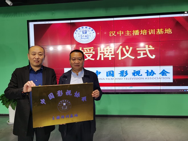 中国影视协会汉中直播培训基地同步成立,协会执行会长刘景峰同志向袁国强同志授牌。