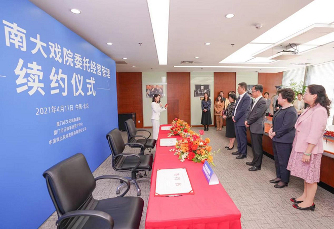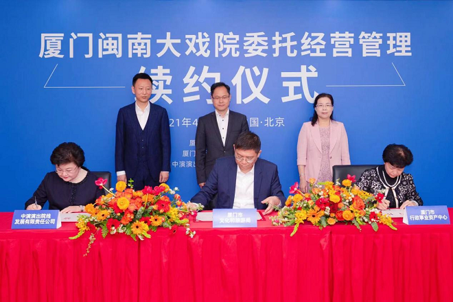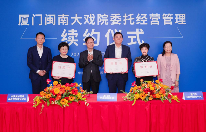 厦门市文化和旅游局局长、党组书记张权,厦门市行政事业资产中心主任、一级调研员、支部书记林少煌分别对厦门闽南大戏院八年来在政企双方友好合作、密切配合下取得的成绩以及为厦门文化事业发展做出的贡献给予高度的肯定,希望中演院线利用自身优势为厦门引进更多更好的优质剧目和进一步推动厦门本土院团“走出去”,探索市场化运营之路,为厦门文化事业向文化产业的转型发展起到模范带头作用,继续做好安全生产、国有资产保值增值工作。