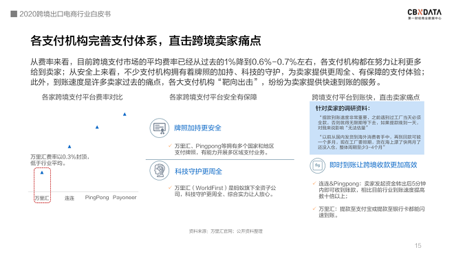 根据相关跨境电商商户调研反馈,提款到账速度非常重要,过去回款整体周期至少3~4个月,而如果提款晚到一天,对卖家来说可能影响是“无法估量”的。