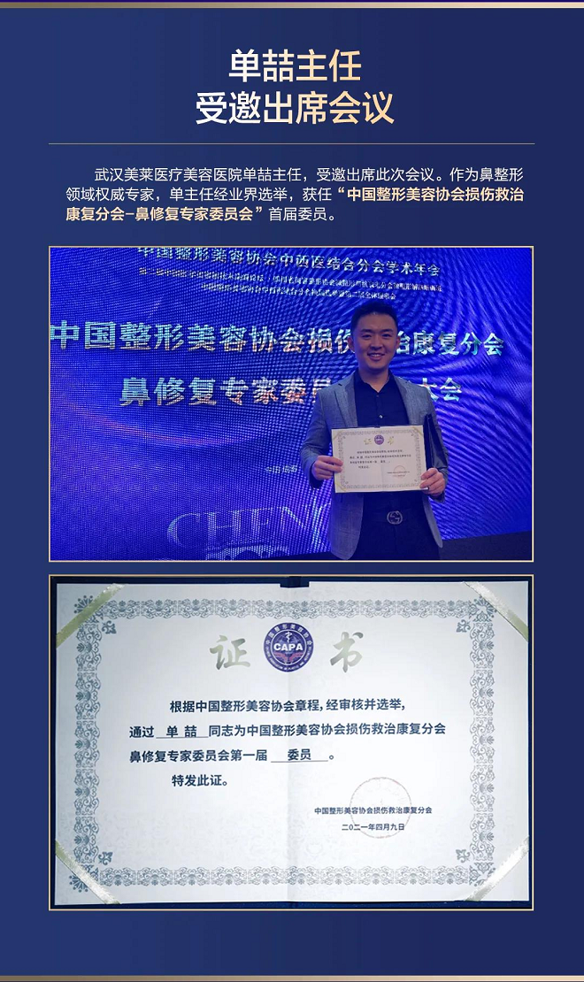 武汉美莱医疗美容医院单喆主任受邀参加,并在此次会议中被选举为中国整形美容协会损伤救治康复分会鼻修复专家委员会第一届委员!