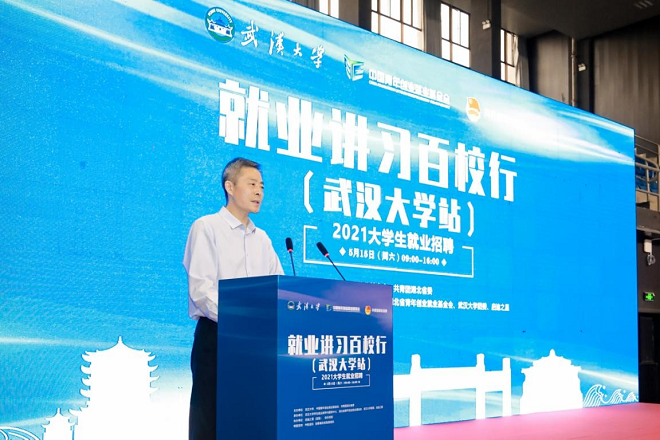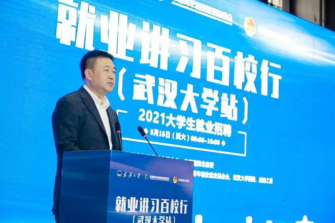 屈文谦在致辞中表示,“就业讲习百校行”活动走进武汉大学,为武汉大学的就业创业工作提供助力,也为武汉大学的学生带来更多可选的就业岗位。不仅可以帮助还没有落实工作的毕业生尽快落实,尽早就业,还可为有实习需求的同学们搭建对接平台,推动学生通过实习实践明确职业方向,锤炼个人能力与品质。希望同学们把握机会,主动出击,能有所收获。