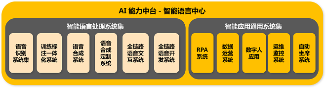 智能语言处理系统集囊括了智能语音和语言技术,包括语音识别、语音合成、自然语言处理、对话管理。本地处理系统还包括声纹识别、声纹复刻、语音唤醒、前端信号处理等。此外,训练标注一体化系统包括语言和声学模型的训练工具、以及语音标注和热词模型的训练工具。语音合成定制系统则为用户提供了自主定制语音合成的标准化工具。