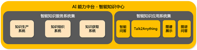 智能知识中心的核心是完成知识的构建,通过知识构建服务,采用知识生产系统、知识组织系统和知识获取系统,结合行业应用,从各行业专业领域文档、规章制度、流程规范、专业文献以及信息化数据等非结构化、半结构化和结构化数据中抽取知识,完成人工智能从感知到认知的跨越。在保证知识完整和数据安全的前提下,利用先进的知识存储技术提高知识调用的效率。利用知识推理和知识学习技术,从所构建的知识中推理和学习新知识。