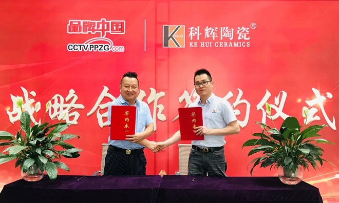 ▲《品牌中国》代表与科辉品牌陈总(右)签约