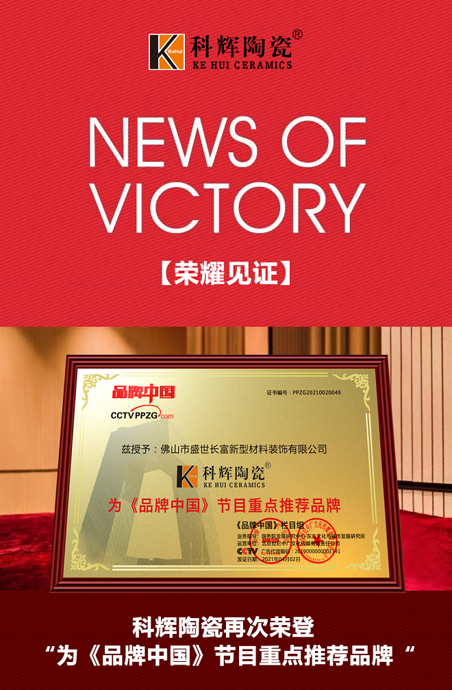 科辉陶瓷依托央视强大的媒体资源优势,向外界震撼发声,不断提升品牌公信力,12年稳健发展,科辉陶瓷不断革新和升级,相信品牌的力量,相信真诚与用心每一步,继续书写品牌的传奇故事。