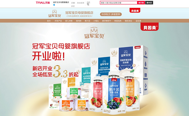 为庆祝冠军宝贝旗舰店全新上线,也作为品牌在全品类母婴生态圈发展的重要布局,让消费者随时随地获得更多科学配方、专业服务的婴幼儿辅食产品和服务,冠军宝贝联合电商平台推出开业钜惠活动——全场商品3.3折起售。
