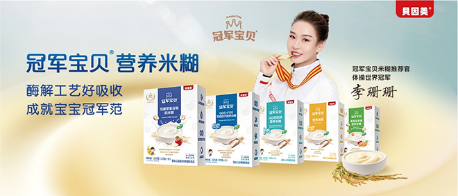 冠军宝贝辅零食以婴幼儿营养均衡为目标,包括米糊、面条、果泥、饼干和肉酥等品种,都是通过科学的配方和选材,结合传统与现代化精加工、高科技工艺生产而成;致力于帮助宝宝过渡断奶、锻炼咀嚼、手眼协调等能力,保障营养均衡,预防挑食、偏食,培养宝宝多样化饮食习惯以及对食材味道的探索,实现从哺乳期到辅食添加期的顺利过渡。
